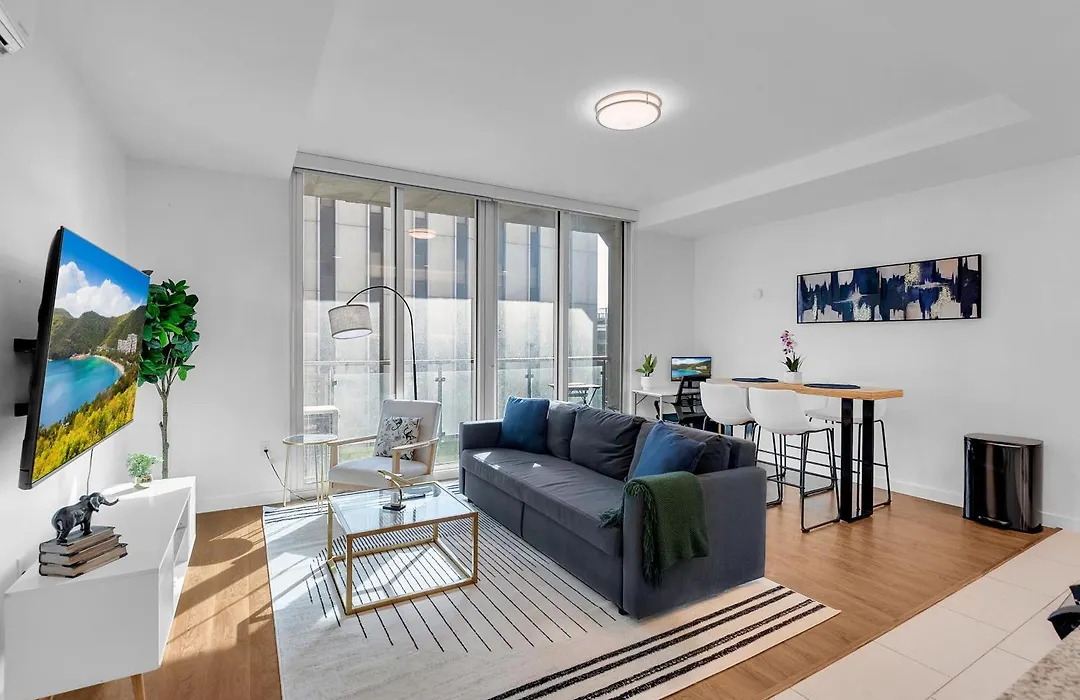 El establecimiento incluye un balcón, una cocina completa y una cocina con climatizador para garantizar el máximo confort. El apartamento ofrece 1 dormitorio. El Apartamento Sleek 1Br Near Bokcenter-Gym,Lounge,Balcony,Petok consta de 1 cuarto de baño. También encontrarás secador de pelo y artículos de aseo.